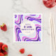 Retro flower with round frame on violet and blue wavy lines background birthday napkin.
