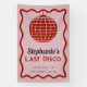 he Retro Wave Pink and Red Last Disco Bachelorette Weekend banner radiates an aura of lively nostalgia and anticipation. Against a soft, light pink background, a bold red wave frames the banner, infusing it with a sense of vibrant energy and movement. Positioned at the top, a striking red disco ball commands attention and serves as the focal point, encapsulating the essence of a dynamic and spirited celebration.