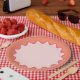 Retro Wavy Curve Border Blush Pink Peach Paper Plate