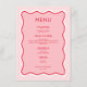 Elevate your Valentine wedding with our Personalised Funky Valentine Wavy Red and Pink Wedding Menu. This wedding menu adds a bold touch to your red and pink wedding theme decor, making it a standout piece among your eclectic wedding table settings. Perfect for couples seeking valentine wedding ideas, these wedding menu cards enhance valentine wedding table decorations. Let this funky wedding table decoration inspire your wedding menu ideas and complete your pink and red wedding theme wedding table decor.