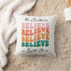 Create lasting memories by adding one of your favourite family photos to this "We Believe in Santa Claus" retro colours festive pillow.