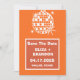 Retro, vintage, groovy, disco ball, orange and brown, typography, photo save the date. You can personalise it with your details.