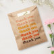 This favour bag features stacked retro thank you lettering in warm peach, orange, and terracotta tones. Perfect for wedding welcome gifts, bridal shower favours, bachelorette party treats, or birthday celebrations. The playful repeating design adds a stylish and modern touch to your event details.