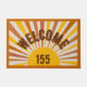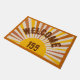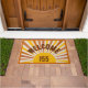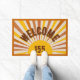 This personalised doormat features retro sun and sunshine with "welcome" text and customised house number.