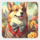 Retro Welsh Corgi Cardigan Painting Square Sticker