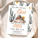 Cute boy's western themed first birthday invitation featuring a cactus desert landscape, rope style word one, and hand drawn horseshoe. This wild west boy's 1st birthday invitation is ideal for a western themed first birthday party.