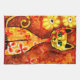 Retro Whimsical Cat Kitty Floral Orange Yellow Red Tea Towel