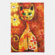 Retro Whimsical Cat Kitty Floral Orange Yellow Red