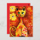 Retro Whimsical Cat Kitty Floral Yellow Red Orange Postcard