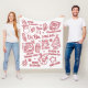 Retro Whimsical Festive Red Christmas Doodles Fleece Blanket
