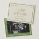 Retro White and Green Wedding Save the date Photo Invitation