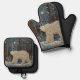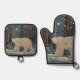 Retro white bear boho winter woodland forest oven mitt & pot holder set