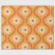 Retro White Flowers on Mid Century Orange Ogee Wrapping Paper