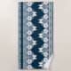 Retro white lace with butterflies on a dark blue b beach towel