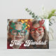 Retro White Script Feliz Navidad One Photo Holiday Card
