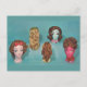 Don't get wigged out! Enjoy this postcard of vintage fashion wigs, and the creepy heads upon which they sit.