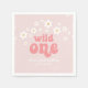 Wild One! Retro inspired first birthday party napkins with 70's style daisies and boho fonts and colours.