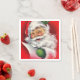 These Christmas napkins are the perfect addition to your next holiday party. A smiling Santa Claus, in bright red and white, has a gleam in his eye and winks while checking over his naughty and nice list.