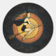 This retro Halloween design has a vintage pin-up girl style illustration of a witch on a broomstick.