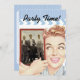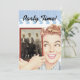 Birthday party invitation featuring a vintage 1950s illustration of a woman holding a photo. Customise it with your own photograph and text. Retro cool!