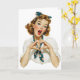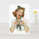 Retro Woman Making Heart Gesture Card