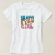 This t-shirt features the text "Brown Eyed Girl" in retro style lettering. A fun tee with colourful lettering for the brown eyed women in your life.