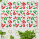 Christmas boomerangs kitchen towel.  Background colour can be customised.