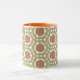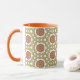 A cool retro themed pattern of orange and yellow rounded flower designs