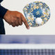 This ping pong paddle features a retro hibiscus flower, tropical palm trees, and blue pattern. It's reminiscent of classic Hawaii or Tahiti, almost like a tropical shirt pattern. Your monogram initial appears in yellow against a blue floral background, which has a simulated brushed metal look, in the center. This nostalgic design might remind you of tropical beaches and relaxing waves whenever you see it.