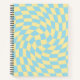 Retro Yellow Blue Pastel Warped Checks Chequered Notebook