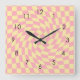 Retro Yellow Pink Check Warped Chequered Dorm Square Wall Clock