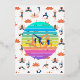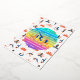 A vibrant retro design that merges harmony and motion in one expressive piece. At the centre, three figures perform synchronised yoga poses within a large horizontal-striped circle filled with radiant rainbow colours—from turquoise and yellow to pink and purple—giving a dynamic and joyful feel. The black background is decorated with repeating lotus flowers and yoga figures, adding rhythm and visual depth. It’s like a full artistic scene where repetition meets a focal explosion of movement and colour. The retro aesthetic shines through but remains fresh and bold. Perfect for yoga lovers or anyone drawn to designs that radiate peace, balance, and playful energy.