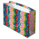 Bright and cheerful zigzag pattern with a retro twist! This colorful geometric design features alternating chevron stripes in pink, yellow, green, red, and blue tones, each decorated with white snowflake or starburst motifs. Perfect for festive vibes, holiday gifting. Adds a vibrant pop of color and playfulness to any gift!