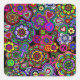 A sticker with a lively and colourful design of peace signs, paisley, ankhs, hearts, and flowers. A far-out flash back to the 1960's.