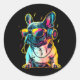 Retrowave French Bulldog with Headphones and Sungl Classic Round Sticker