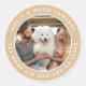 A simple photo return address round sticker template in natural neutral tones, which you can easily update with your name address and custom photo!