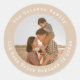A simple photo return address round sticker template in earthy neutral tones, which you can easily update with your name address and custom photo!