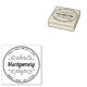 This elegant return address rubber stamp features your family name in a modern script typography in the centre. On either side is a hand drawn decorative flourish with hearts and leaves. The outer edge has a double ring border and inside of that is your street address and your town/state/zip for you to personalise. It was a joy to create this one for you! Hope you enjoy it. Designed by artist ©Susan Coffey.