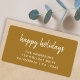 A simple and stylish “Happy Holidays” return address label featuring modern minimalist handwritten script typography on an elegant gold background. Perfect for adding a touch of chic sophistication to your Christmas cards and festive mail, this design blends classic holiday warmth with a clean, contemporary feel. Personalise it easily with your family name and address for a unique and polished finishing detail. Ideal for pairing with our matching holiday card range in the same elegant gold design, this return address label brings cohesion and charm to your seasonal stationery. A lovely way to make your envelopes feel thoughtful, festive, and beautifully coordinated this holiday season.