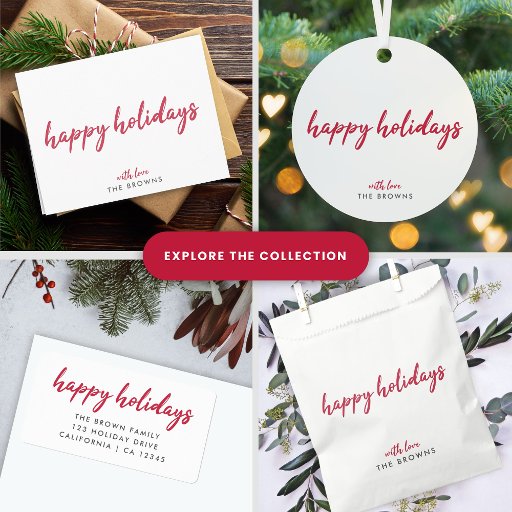 A simple and stylish “Happy Holidays” return address label featuring modern minimalist typography in deep red. This elegant and contemporary design adds a warm, festive touch to your holiday mail. Personalize it easily with your family name and address for a unique label that complements your seasonal stationery perfectly. Ideal for pairing with our matching holiday card range in the same design, this return address label offers a cohesive and polished finishing detail. Whether you’re sending festive greetings, invitations, or thank you notes, this modern design helps your envelopes look refined and cheerful while keeping your personal style consistent across your holiday correspondence.