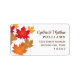 Fall themed address stickers / labels feature vibrant maple leaves with a custom return address. Rich autumn colours include orange, red, copper, gold, and chocolate brown. Ivory / ecru background.