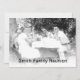 1950s photograph of a family get-together or reunion picnic.gathering in black and white. Dad, mum, son and family sit around a picnic table covered with a table cloth.