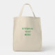 Add a personal touch to grocery shopping with this reusable tote bag. The front features vegetables drawn is shades of green and text that can be customised. The back of the back is fully customisable with text or not, it is up to you.