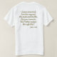 Back of T-shirt: “Jesus answered, I am the way and the truth and the life. No one comes to the Father except through Me.” John 14:6