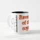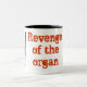 A cartoon (two actually, so that it shows on both sides of the mug) shows a stop knob falling out of an organ while the horrified organist looks on, still trying to play. The words "Revenge of the organ" are written in blazing orange between the drawings. Can be used on coloured and white mugs.