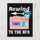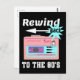 Rewind back to the 80's, this design features a eighties classic pink walkman or cassette player and text saying "Rewind back to the 80's".
