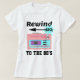 Rewind Back to the 80's, this design features a retro 1980's style in pink and blue with text saying, "Rewind Back to the 80's".