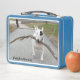 This is a standard metal lunchbox that appears to work just fine. We designed this box ourselves with an uploaded photo and custom text on the front and back. It looks absolutely beautiful except the front of the lunchbox is not centered like it shows in the photo. The print borders don't align with the inset flat part of the box where the preview photo online showed it perfectly centered in there. The back looks nice and centered though.
