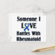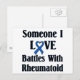 Rheumatoid arthritis RA design. Support and awareness for rheumatoid arthritis, an painful, debilitating auto-immune disease. Features the RA blue ribbon for awareness and the words "Someone I love battles with Rheumatoid"