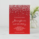 Striking dark to rich red ombre birthday invitation with glamourous style faux diamond sparkling rhinestone confetti.